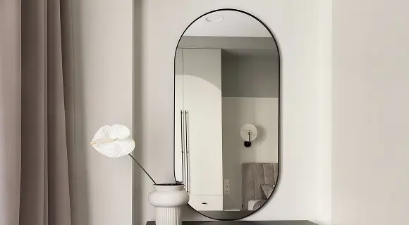 Lustro w aluminiowej ramie o cienkim profilu: delikatne i eleganckie. Wykonane ręcznie, nadaje pomieszczeniu wrażenie lekkości i harmonii. Nadaje się do sypialni, przedpokoju lub garderoby.
